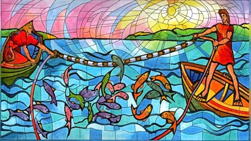 Søndag den 9. november kl. 11 inviterer præst Bente Lybecker, Peter Plougmann og Anette L. Hemmingsen til familiegudstjeneste i sognehuset. Dagens fortælling handler om Peters fiskefangst (Lukas, kap. 5, vers 1-11).