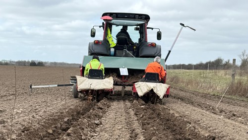Lørdag den 28. marts gik tre mænd og en traktor med plantemaskine i gang på Havdrup Kirkes jord vest for kirken. Tirsdag den 7. april blev de sidste træer (eg, bøg og nål) af i alt 20.575 planter sat. Sikken festdag!