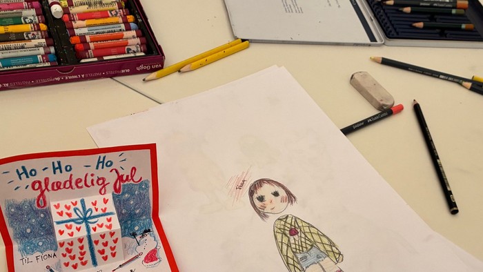I dag sluttede efterårets tegnehold med Pernille Mejslov med hjemmetegnede julehilsner - og lasagne i pausen.
